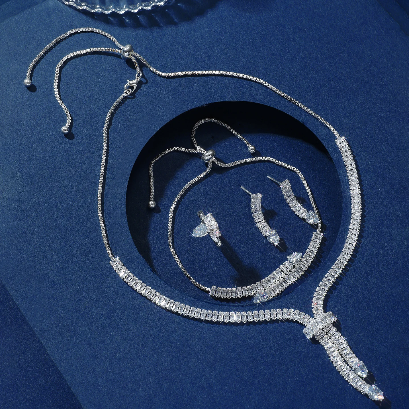 Luxury Water Drop Cubic Zirconia Jewelry Set – Necklace, Earrings, Bracelet & Ring for Women